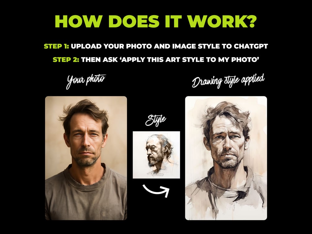 Each image style uses a portrait of a man as the subject, so you can clearly distinguish between styles. You can apply the art styles to any subject you like in ChatGPT - family photos, pet photos, landscapes, etc.